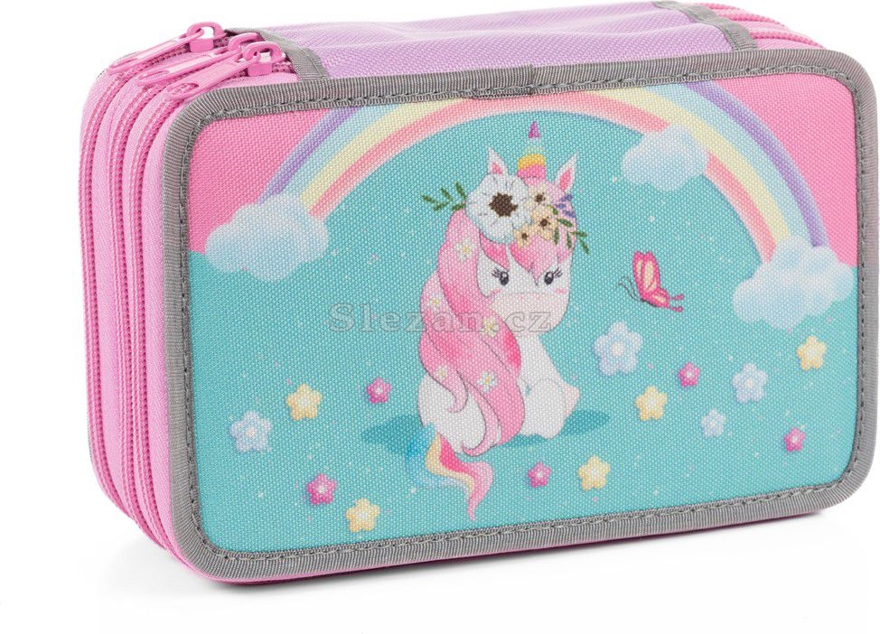Školní penál třípatrový Rainbow Unicorn