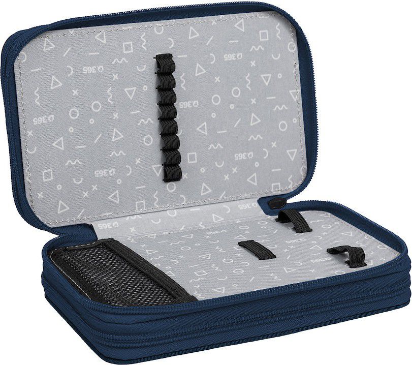 První patro obsahuje 8 gumiček na pastelky, 3 širší gumičky na ořezávátko i gumu a nově také síťovanou kapsičku s pružným lemem na uložení drobností.