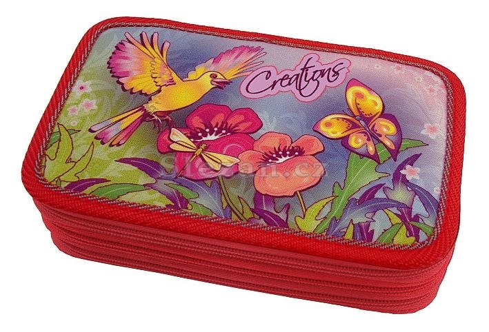Školní třípatrový penál je určen pro žáky 1.stupně ZŠ. Každé jednotlivé patro se uzavírá na samostatný zip. Má celkem 30 pružných gumových poutek pro uložení psacích potřeb. Jedno patro je opatřeno uzavíratelnou kapsičkou na suchý zip, ve třetím je průhledná přihrádky pro týdenní rozvrh se jmenovkou. Pouzdro má rozměr š.190 x v.55 x h.120mm. Prázdné váží 0,19kg (plněné 0,38kg). Můžete si vybrat mezi penálem neplněným nebo plněným psacími potřebami. Psací potřeby jsou od renomovaných značek Koh-i-noor, Centropen, Concord. Plněný školní třípatrový penál obsahuje:
