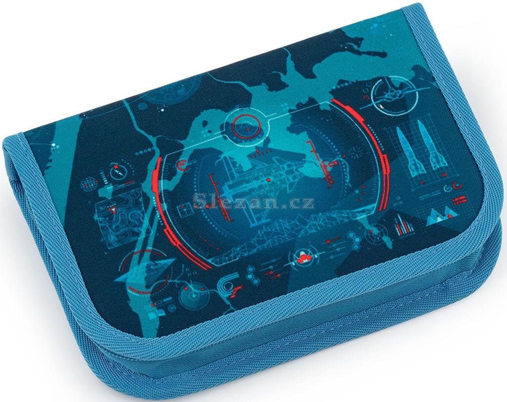 Jednopatrové školní pouzdro se dvěma klopnami je vybaveno 21 klasickými gumovými úchyty na pastelky a fixy, třema širšími úchyty na pravítko, kružítko či nůžky a dvěma většími úchyty na gumu a ořezávátko. Pod klopou z průhledné folie najdete rozvrh hodin, druhé poslouží třeba i na taháky :-)