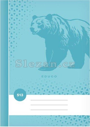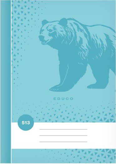 Školní linkovaný sešit ve formátu A5, v tyrkysové barvě, s motivem medvěda, v deskách z křídového papíru. Typ: 513 Formát: A5 Motiv: medvěd Barva: tyrkysová Šířka řádku: 12 mm Počet listů: 10, linkované Gramáž listů papíru: 60 g Desky: matný křídový papír 200 g Uvedená cena je za 1 ks. Víte, co znamená číselné označení na sešitech?