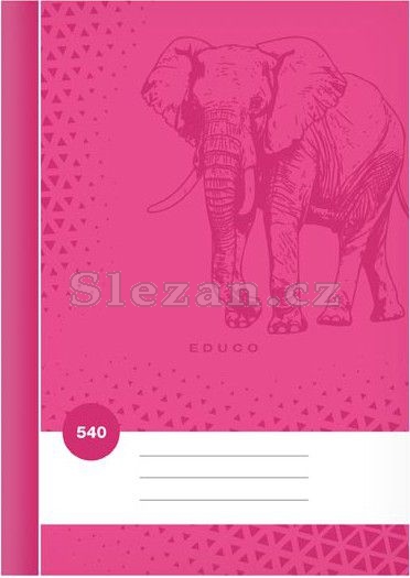 Školní sešit čistý, bez linek ve formátu A5, v malinové barvě, s motivem slona, v deskách z křídového papíru.