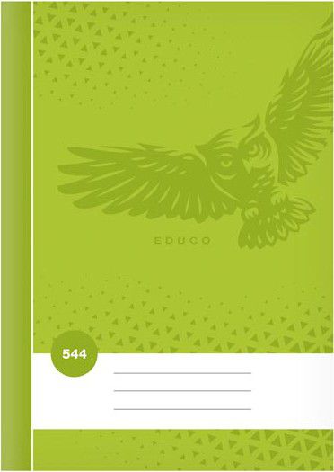 Školní linkovaný sešit ve formátu A5, v zelené barvě, s motivem sovy, v deskách z křídového papíru. Stránky jsou opatřeny okraji o šířce 1,5 cm. Typ: 544 Formát: A5 Motiv: sova Barva: zelená Šířka řádku: 8 mm Počet listů: 40, linkované Gramáž listů papíru: 60 g/m2 Desky: matný křídový papír 200 g/m2 Uvedená cena je za 1 ks. Víte, co znamená číselné označení na sešitech?