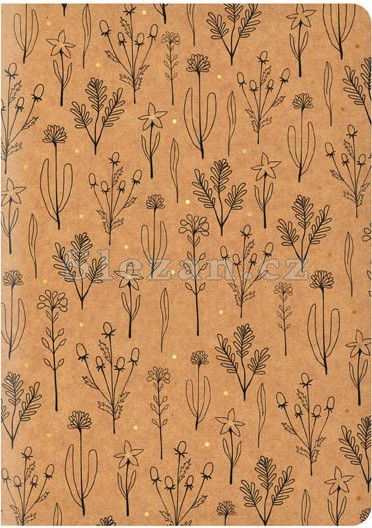 Školní linkovaný sešit ve formátu A4, v hnědé barvě, s motivem rostlin, v originálních deskách z kraftového papíru. Stránky jsou opatřeny okraji o šířce 1,5 cm. Typ: 464 Barva: hnědá Motiv: rostliny Šířka řádku: 8 mm Počet listů: 60, linkované Gramáž listů papíru: 80 g Desky: kraftový papír s potiskem a zlatou ražbou Uvedená cena je za 1 ks. Víte, co znamená číselné označení na sešitech?