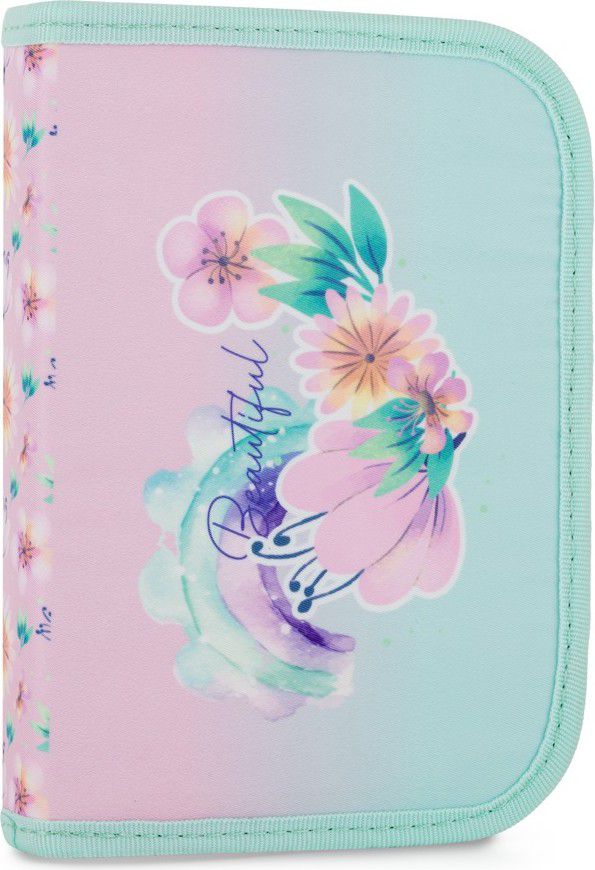 Jednopatrový školní penál se dvěma chlopněmi bez náplně.