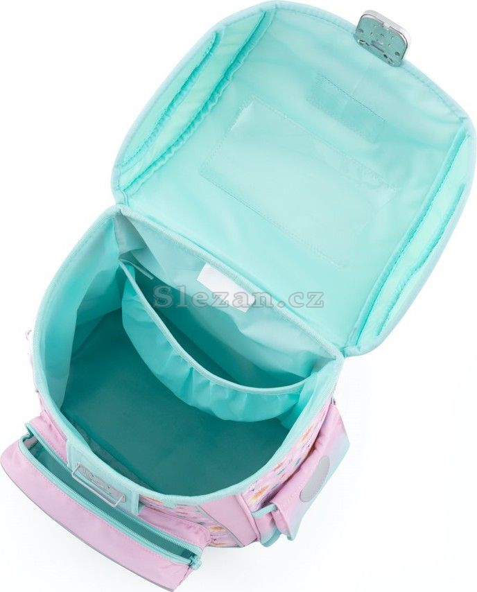 Aktovka se skládá z jedné prostorné komory, kam se pohodlně vejdou všechny školní pomůcky pro děti v 1. a ve 2. třídě.