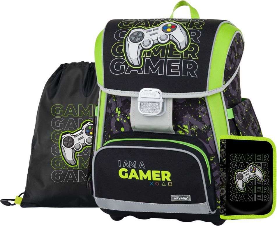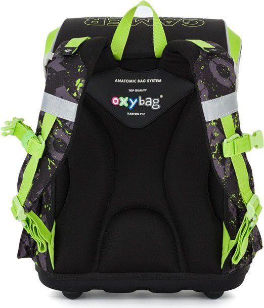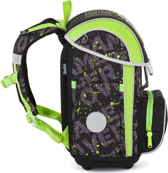 Aktovka: Školní aktovka z řady Premium je anatomicky tvarovaná a zajišťuje tak správné usazení na zádech. Vyztužená záda a vnitřní výztuha udržují stálý tvar batohu. Polstrování je z příjemného prodyšného materiálu, široké měkčené popruhy jsou navrženy tak, aby dokonale přilnuly a rovnoměrně zatížily ramena dítěte. Aktovka se skládá z jedné prostorné komory, kam se pohodlně vejdou všechny školní pomůcky pro děti v 1. a ve 2. třídě. Dno batohu je z pevného materiálu, chrání tím obsah před převržením a vysypáním. Zapínání je na bezpečnostní kovovou přezku s reflexní odrazkou. Přední kapsička je určena na svačinu, nechybí řada reflexních prvků, díky kterým je aktovka viditelnější. Délka zádového panelu: 33 cm. Objem: 27 l. Nosnost: 8 kg. Sáček: Praktický sáček na cvičky nebo přezůvky do školy. Uzavírá se snadno stažením šňůrek. Penál: Jednopatrový školní penál se dvěma chlopněmi bez náplně. Gumová poutka k uchycení psacích potřeb. Na vnitřní chlopni je průhledná fólie na rozvrh hodin.