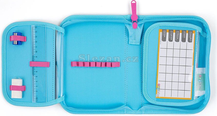 Aktovka se skládá z jedné prostorné komory, kam se pohodlně vejdou všechny školní pomůcky pro děti v 1. a ve 2. třídě.