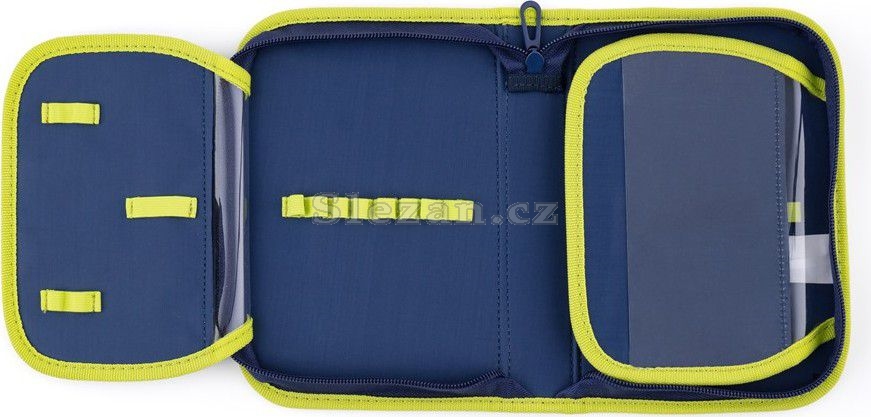 Jednopatrový školní penál se dvěma chlopněmi bez náplně.