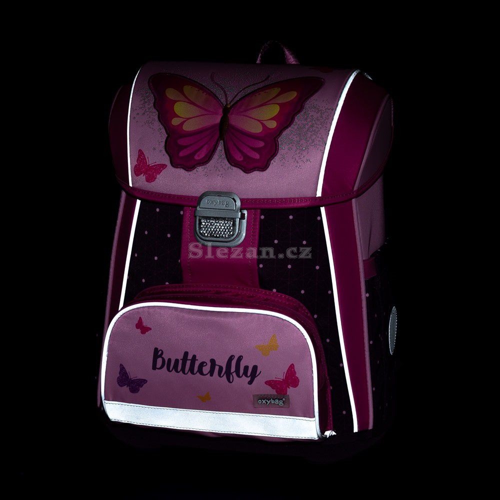 Přední kapsička je určena na svačinu, nechybí řada reflexních prvků, díky kterým je aktovka viditelnější.