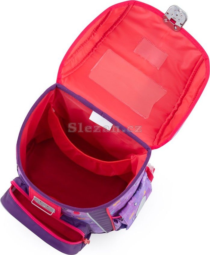 Aktovka se skládá z jedné prostorné komory, kam se pohodlně vejdou všechny školní pomůcky pro děti v 1. a ve 2. třídě.