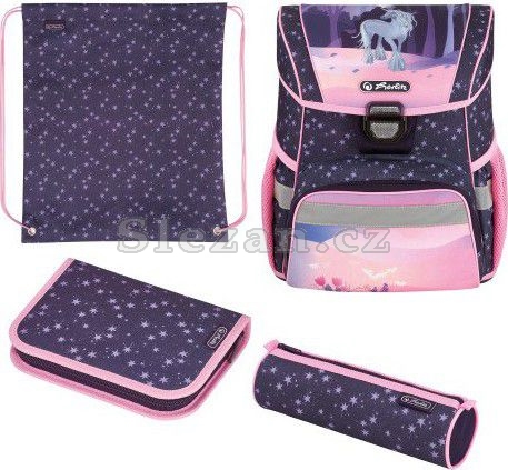 Výbava: penál 16 dílů, sáček na cvičky, kulaté pouzdro