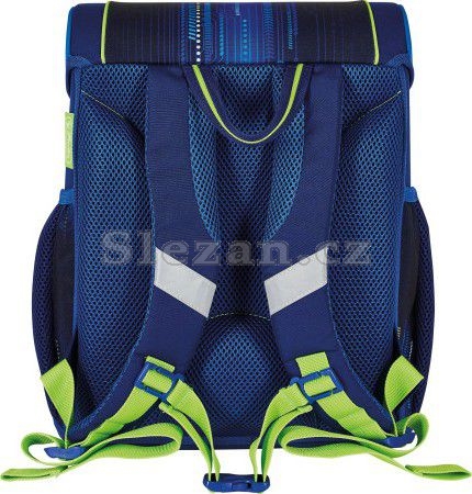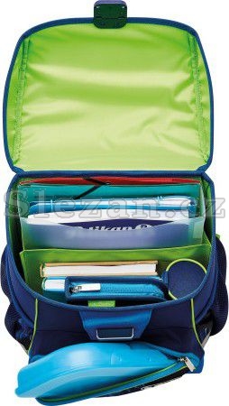 ergonomicky tvarované a prodyšné polstrování zad, nastavitelné ramenní popruhy, výškově nastavitelný hrudní pás, hlavní kapsa s prostorem pro knihy, boční kapsy s elastickými pásky, přední kapsa na zip, stabilní spodní deska, pohodlná rukojeť, zavírání Click lock, reflexní materiály Oralite, integrovaná odrazka v zámku.