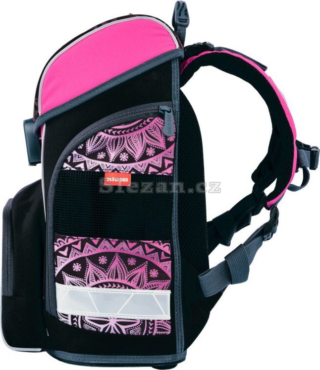 Kvalitní, ergonomicky tvarovaná, odlehčená školní aktovka je vybavena reflexními prvky a anatomicky tvarovanými zády s pevnou konstrukcí.