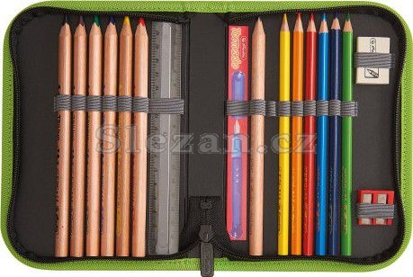 Výbava: penál 16 dílů, sáček na cvičky, trojúhelníkové pouzdro