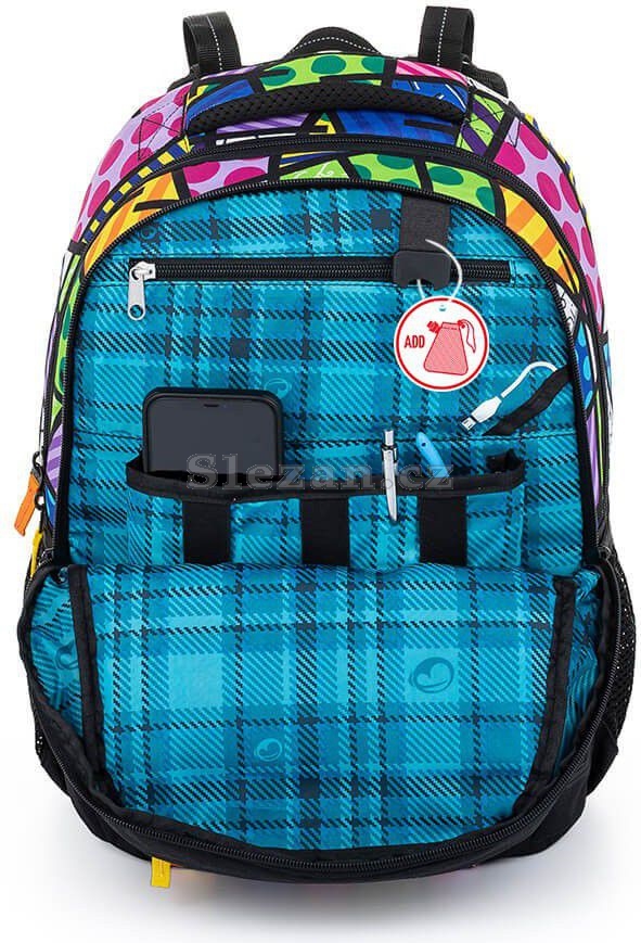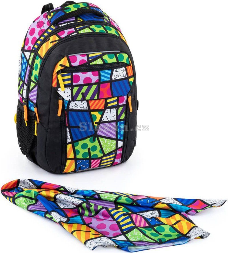 Vzhledem k tomu, že se jednotlivé potištěné části batohu střihají z role látky, může být každý batoh originál, tzn. rozložení barevných tisků se může drobně lišit od fotografie.