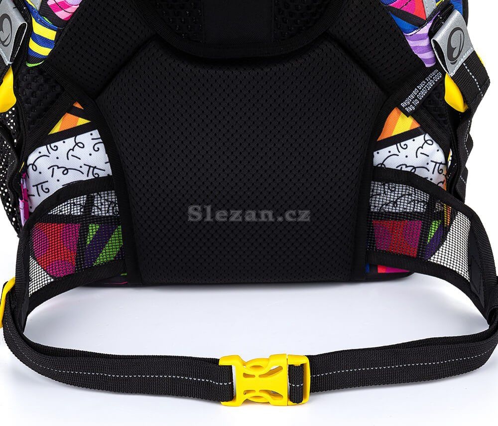Ramenní popruhy jsou anatomicky tvarované a měkce polstrované. Batoh je možné fixovat na ramenou pomocí flexibilní hrudní pásky, která je součástí.