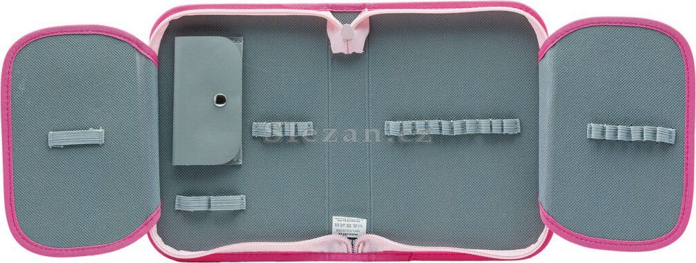 2. Školní penál jednopatrový, prázdný s dvěma chlopněmi, o rozměru š.19,5 x v.3,5 x h.13 cm