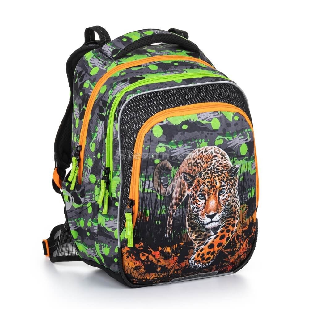 Školní tříkomorový batoh levhart