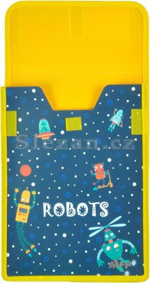 Kvalitní složka s motivem různých robotů, která ochrání sešity ve formátu až A4, kterou si můžete i podepsat. Složka se suchým zipem zajistí aby se sešity nikde nerozsypaly nebo nezničily.