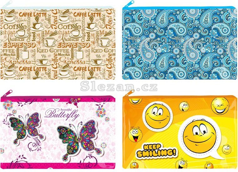 PP složka A5 na dokumenty, se zipem, v mixu motivů a barev. Složka slouží jako pomocník pro třídění a ukládání dokumentů, takže je budete mít vždy pohromadě, vhodná i na psací potřeby a další pomůcky.