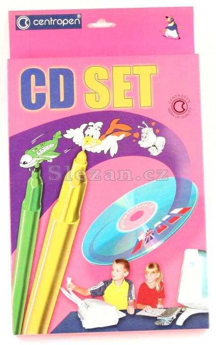 Souprava 9393 CD set obsahuje 12 popisovačů, 8 značkovačů a multimediální CD-ROM s elektronickými hrami PEXESO a PUZZLE a s 50-ti omalovánkami, které si můžete vytisknout a vybarvit.