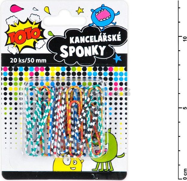 Spona kanselářská pruh. 20ks/50mm - ideální pomocník pro spínání papírů a dokumentů, který nesmí chybět v žádném kancelářském šuplíku! Sponky jsou pruhované, v různých barvách, dodáváme v krabičce se závěsem po 20 ks.