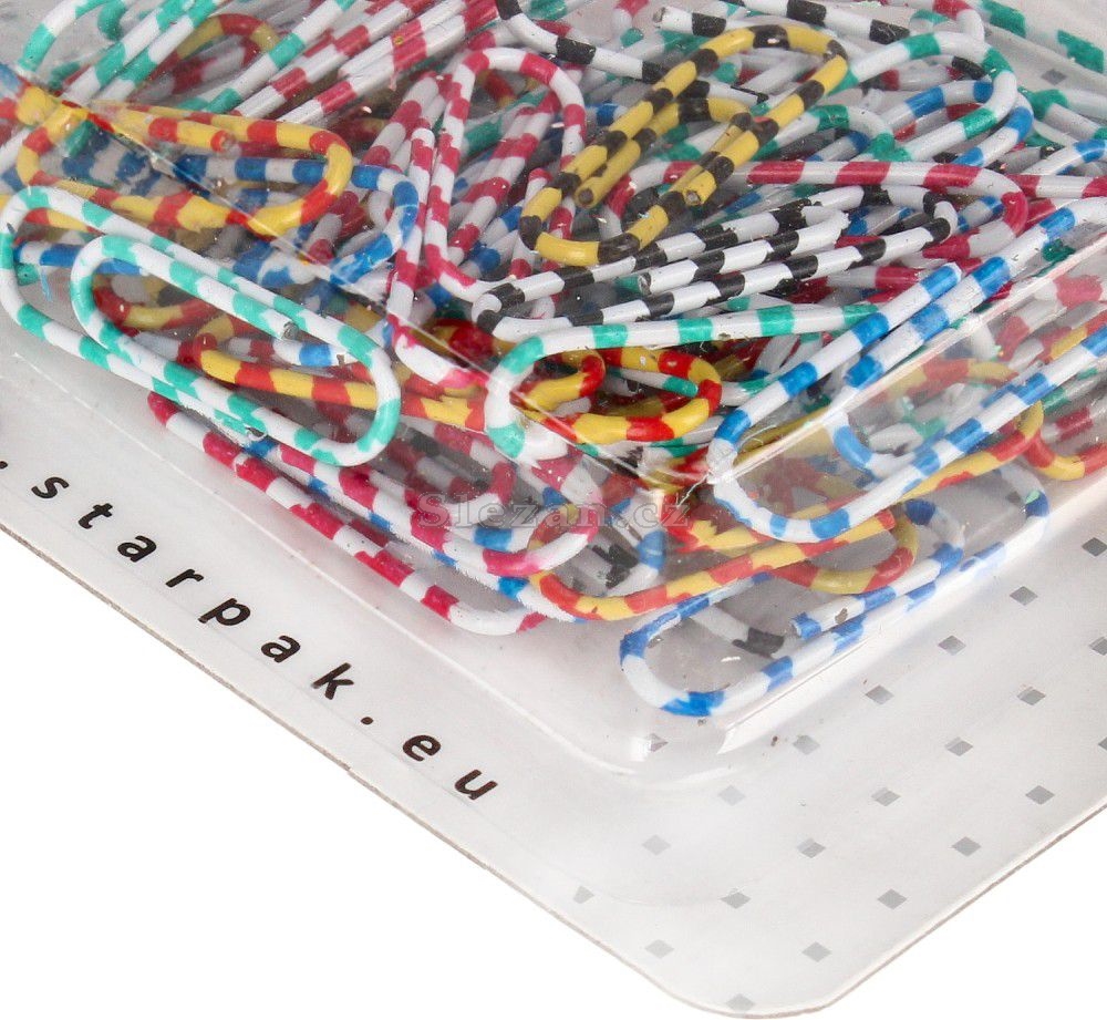 Kancelářský klip Starpak nepostradatelný v každé kanceláři o velikosti 28 mm v barevném vzoru zebra.