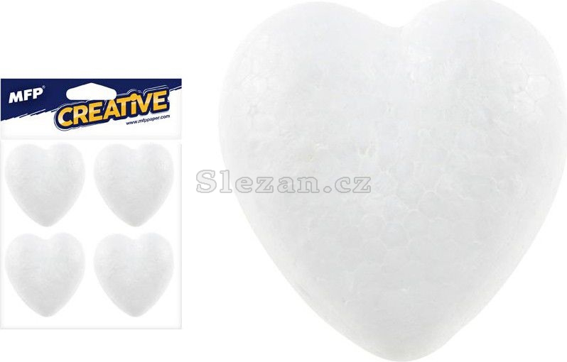 Polystyrenové srdce vhodné k výrobě dekorací.