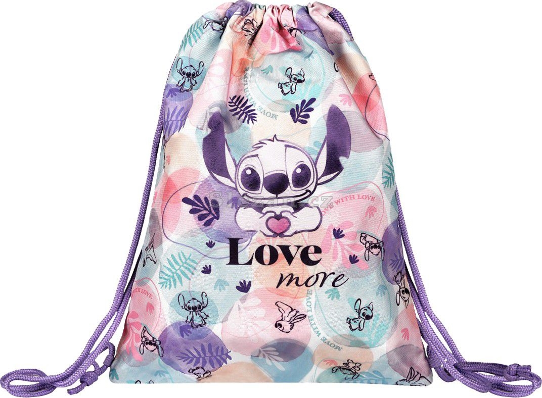Veselý a praktický stahovací vak s motivem Stitche, vhodný do školy na přezůvky nebo na sportovní oblečení.