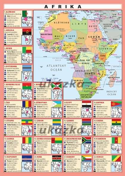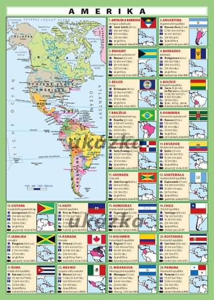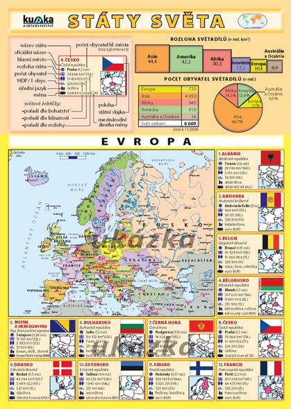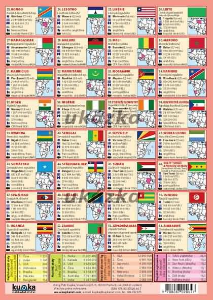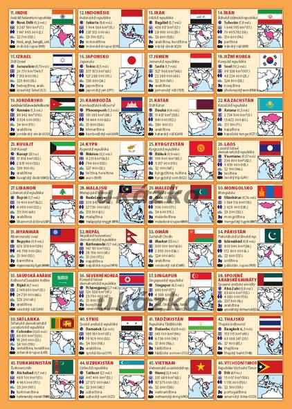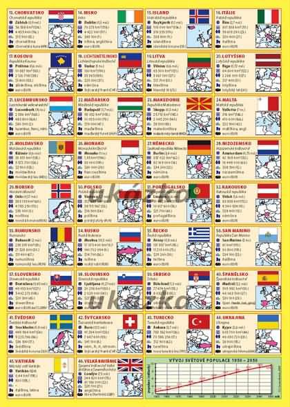 15 údajů u každého státu (včetně mapky a státní vlajky)
