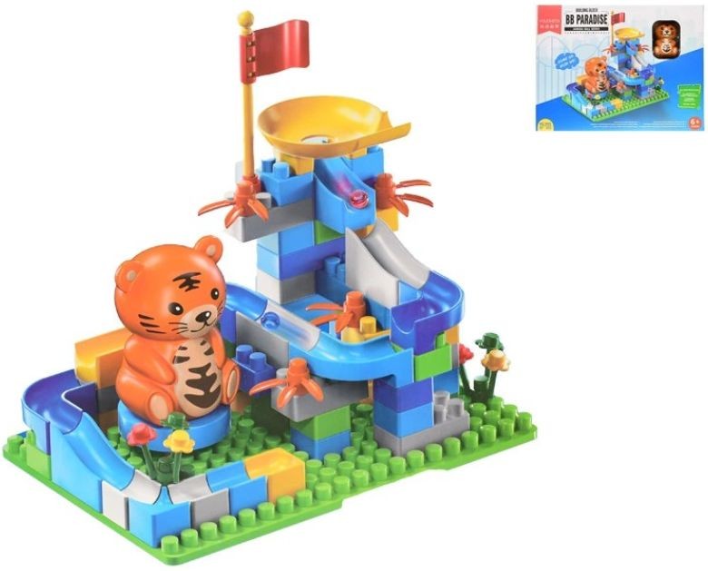 Stavebnice 87ks s dráhou a zvířátkem, v krabičce