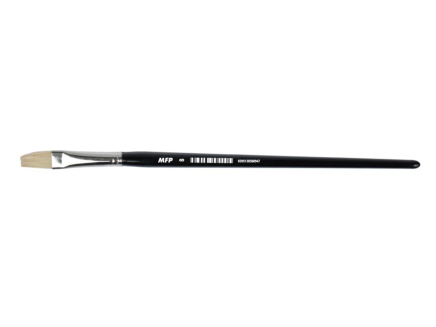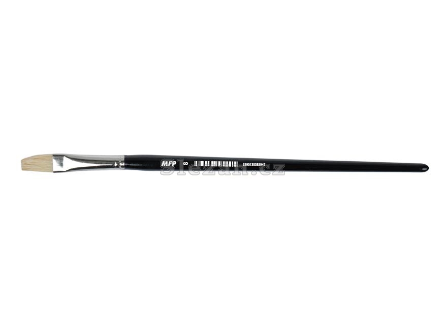 Školní štětec plochý - vhodný do hodin výtvarné výchovy, ale i pro domácí kreativní tvoření - velikost: 8 - materiál: štětiny prasete - použití: vodovými a temperovými barvami, k vykreslování různých ploch na papíře, k malování - barva: černá