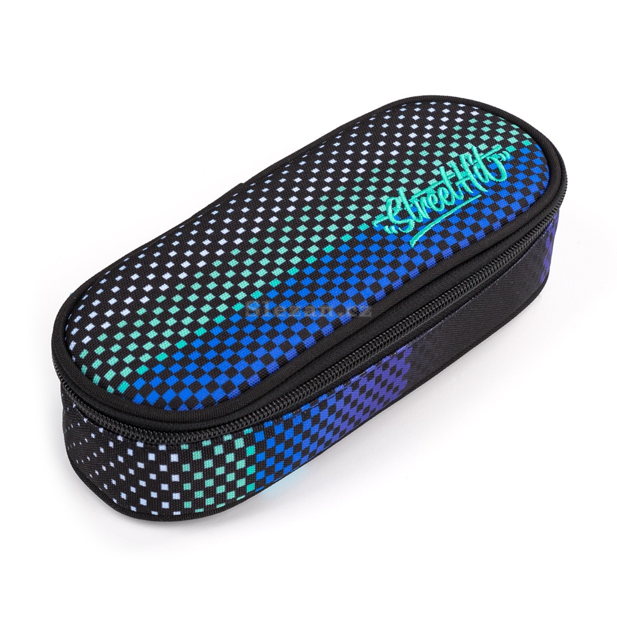 Oválný penál na všechny potřebnosti pro středoškoláky a starší školáky na druhém stupni ZŠ. Uvnitř pouzdra je síťová kapsička na zip a klopa, na níž jsou umístěny gumičky pro uchycení celkem devíti tužek a propisek, které je potřeba mít přehledně uspořádané a po ruce. Prostor pod klopou pak umožňuje volně umístit další psací potřeby – pastelky, fixy, prostě cokoliv potřebujete.