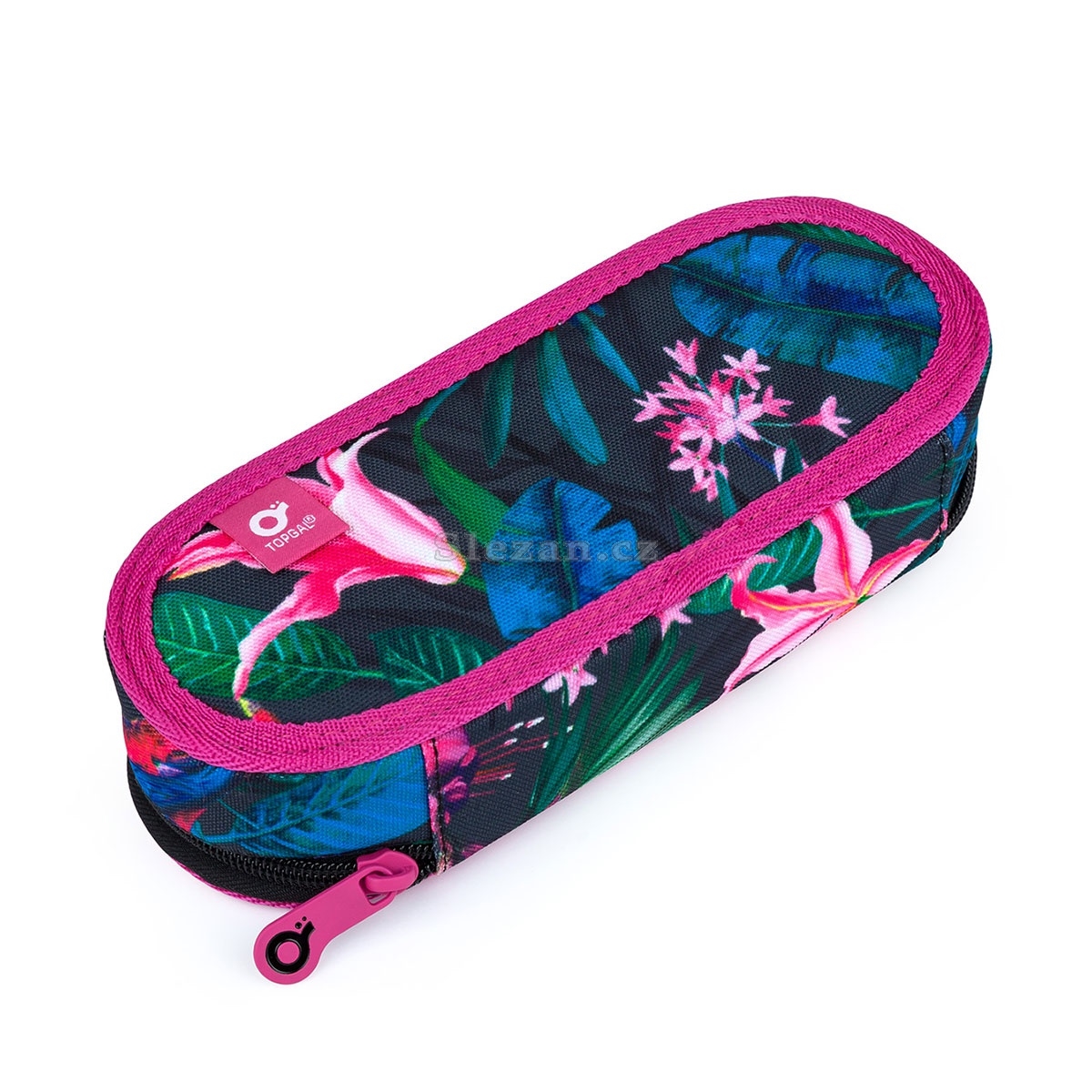 Oválný penál pro všechny potřebnosti. Uvnitř pouzdra je síťová kapsička na zip a klopa, na níž jsou umístěny gumičky pro uchycení celkem devíti tužek a propisek, které je potřeba mít přehledně uspořádané a po ruce. Volný prostor pod klopou pak umožňuje volně umístit další psací potřeby – pastelky, fixy, prostě cokoliv potřebujete.