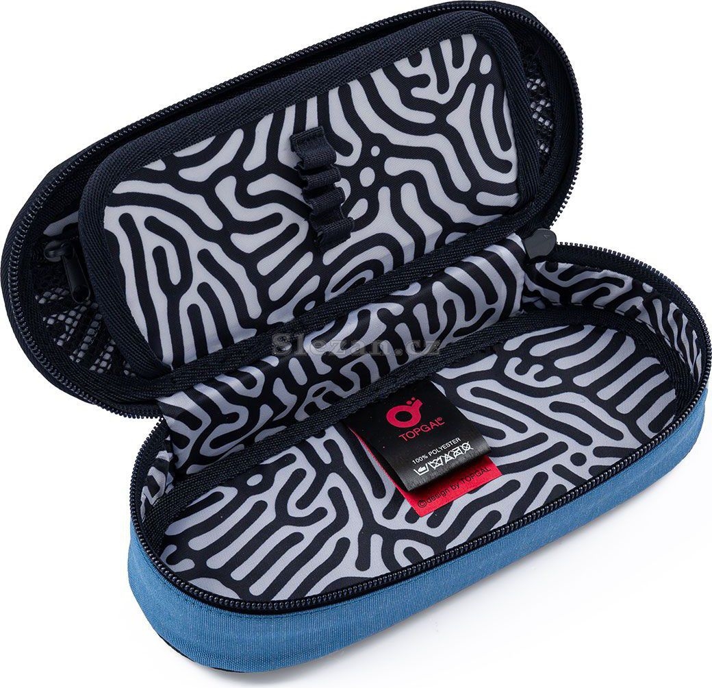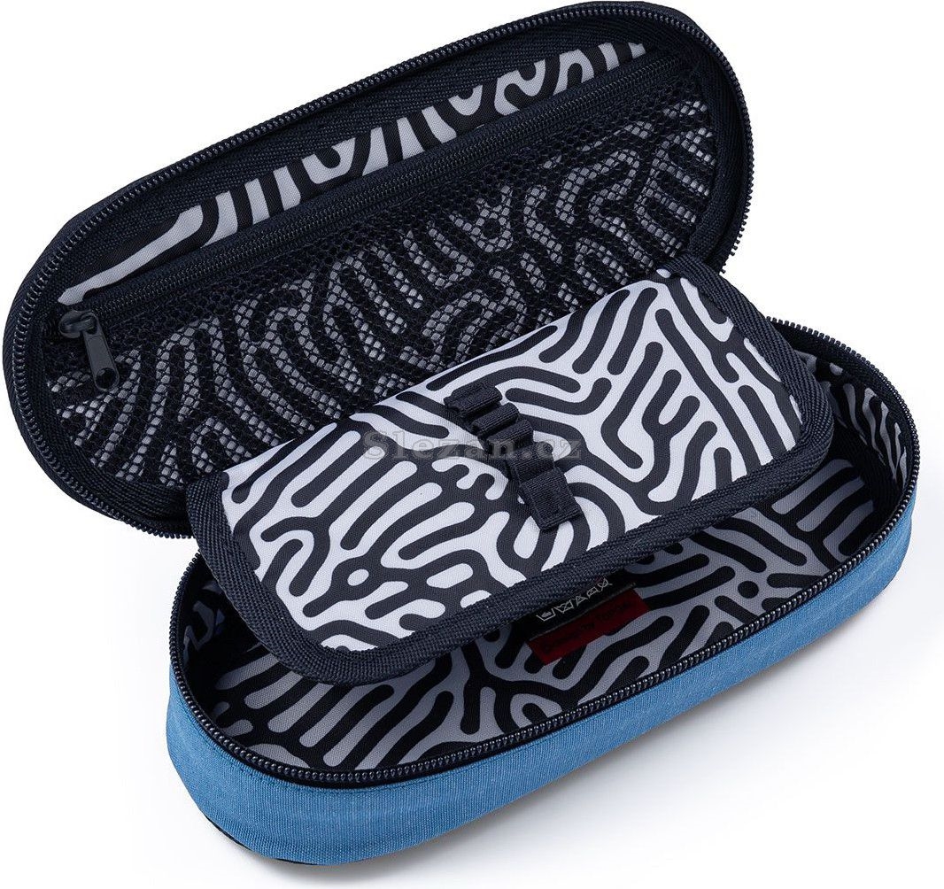 Volný prostor pod klopou slouží pro další psací potřeby – pastelky, fixy, ale i pravítko nebo kružítko.
