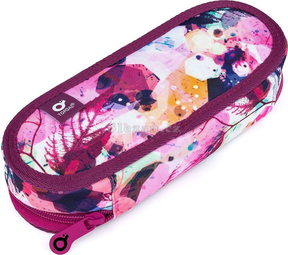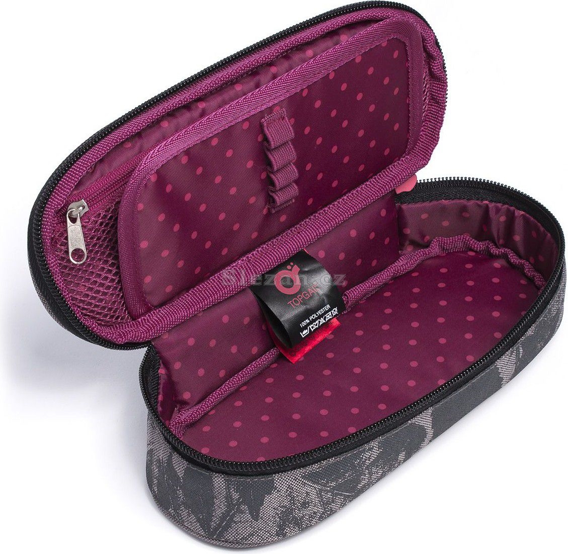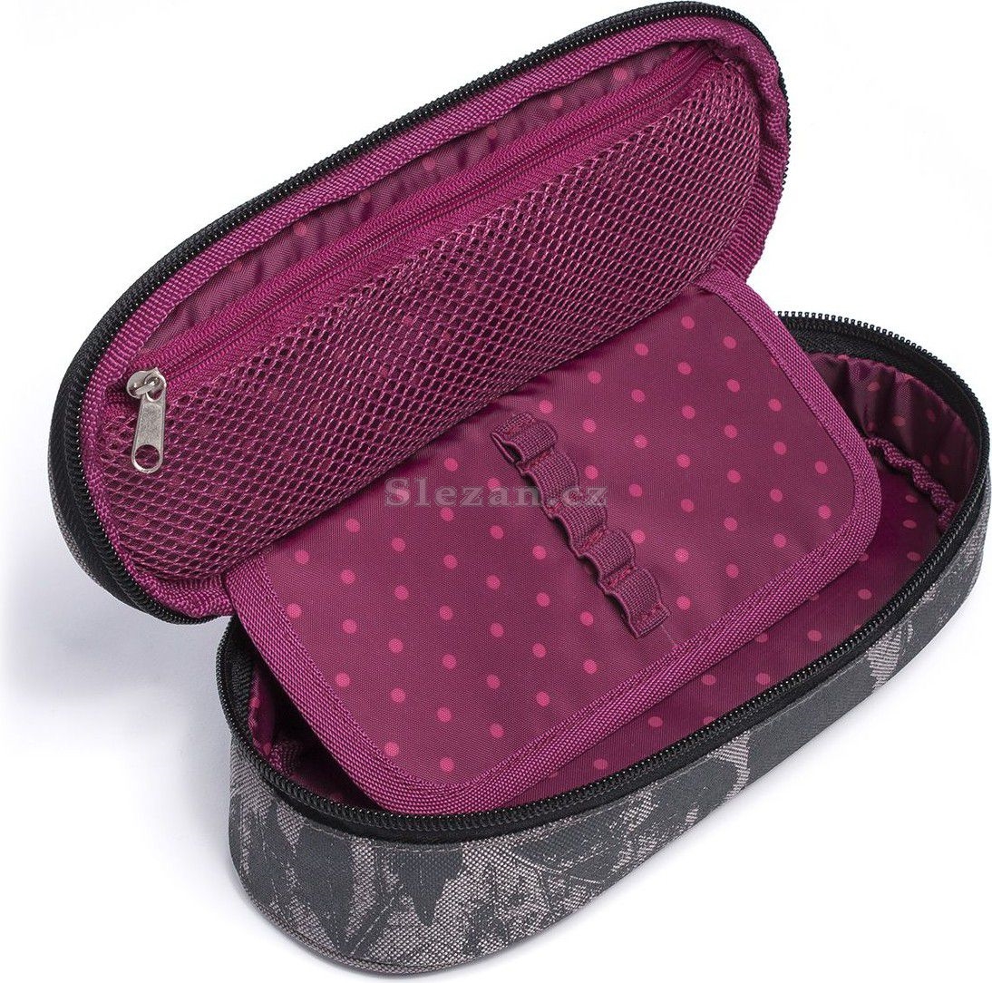 Oválný penál pro všechny potřebnosti. Uvnitř pouzdra je síťová kapsička na zip a klopa, na níž jsou umístěny gumičky pro uchycení celkem devíti tužek a propisek, které je potřeba mít přehledně uspořádané a po ruce. Volný prostor pod klopou pak umožňuje volně umístit další psací potřeby – pastelky, fixy, prostě cokoliv potřebujete. Pouzdro je polstrované, takže se tužky zaručeně nepolámou. Zipy s velkými taháčky navíc umožní bezproblémovou manipulaci s pouzdrem.