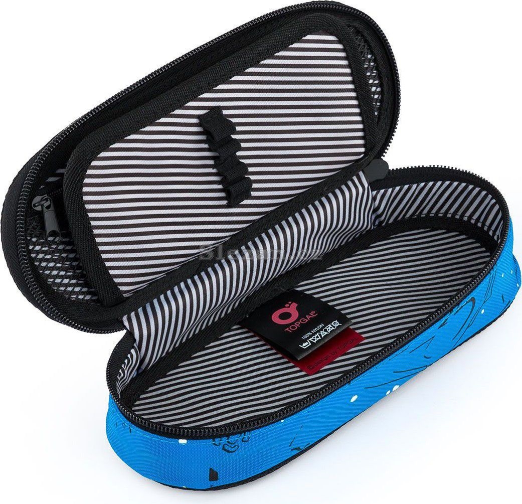 Oválný penál pro všechny potřebnosti ocení spíše starší školáci. Uvnitř pouzdra je síťová kapsička na zip a klopa, na níž jsou umístěny gumičky pro uchycení celkem devíti tužek a propisek, které je potřeba mít přehledně uspořádané a po ruce. Volný prostor pod klopou pak umožňuje volně umístit další psací potřeby – pastelky, fixy, prostě cokoliv potřebujete. Pouzdro je polstrované, takže se vaše tužky zaručeně nepolámou. Zipy s velkými taháčky umožní bezproblémovou manipulaci s pouzdrem. Pozor Neperte penál v pračce! Je vyztužen papírem a ten praní rozhodně nepřežije...