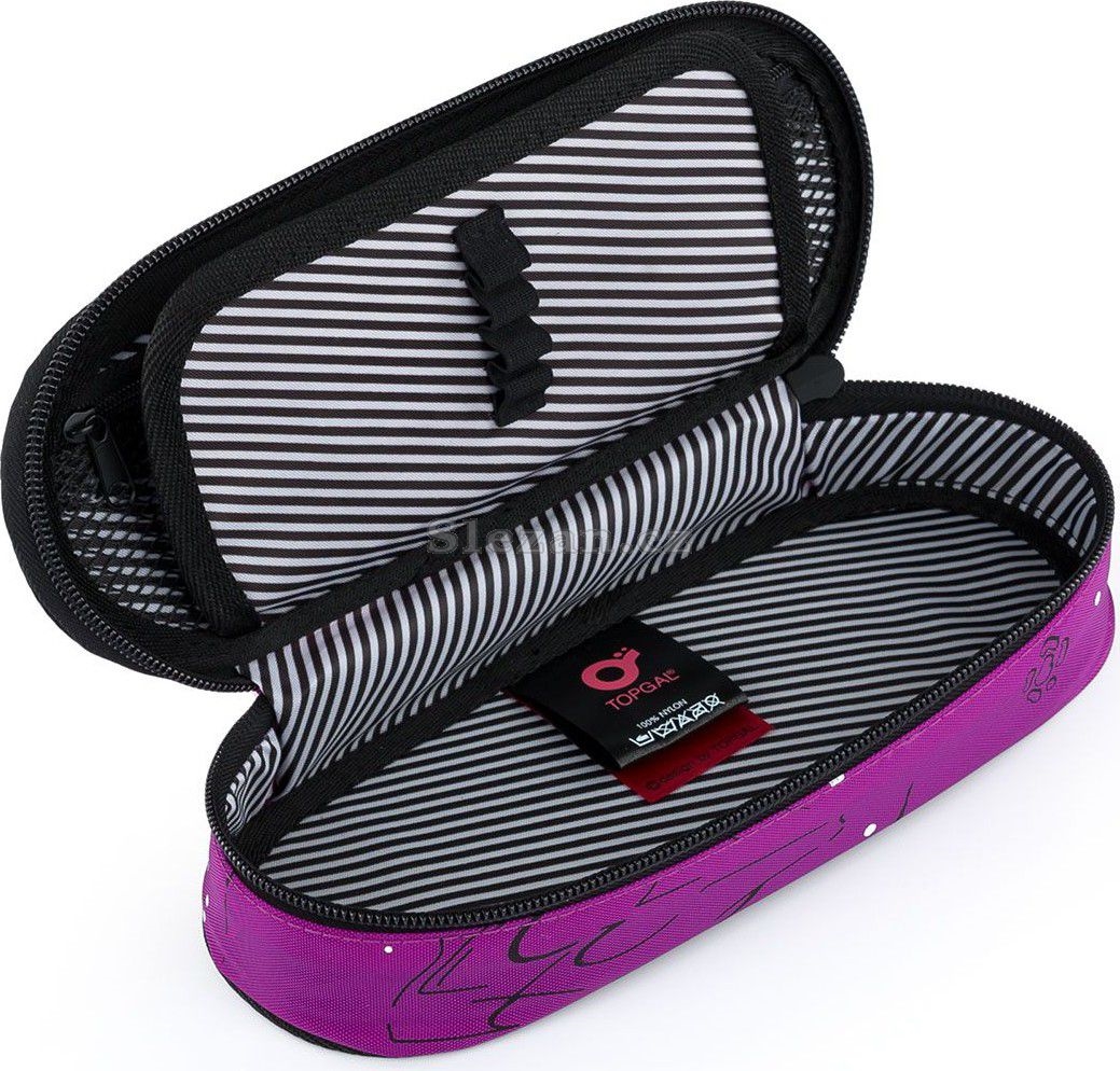 Oválný penál pro všechny potřebnosti. Uvnitř pouzdra je síťová kapsička na zip a klopa, na níž jsou umístěny gumičky pro uchycení celkem devíti tužek a propisek, které je potřeba mít přehledně uspořádané a po ruce. Volný prostor pod klopou pak umožňuje volně umístit další psací potřeby – pastelky, fixy, prostě cokoliv potřebujete. Pouzdro je polstrované, takže se tužky zaručeně nepolámou. Zipy s velkými taháčky navíc umožní bezproblémovou manipulaci s pouzdrem.