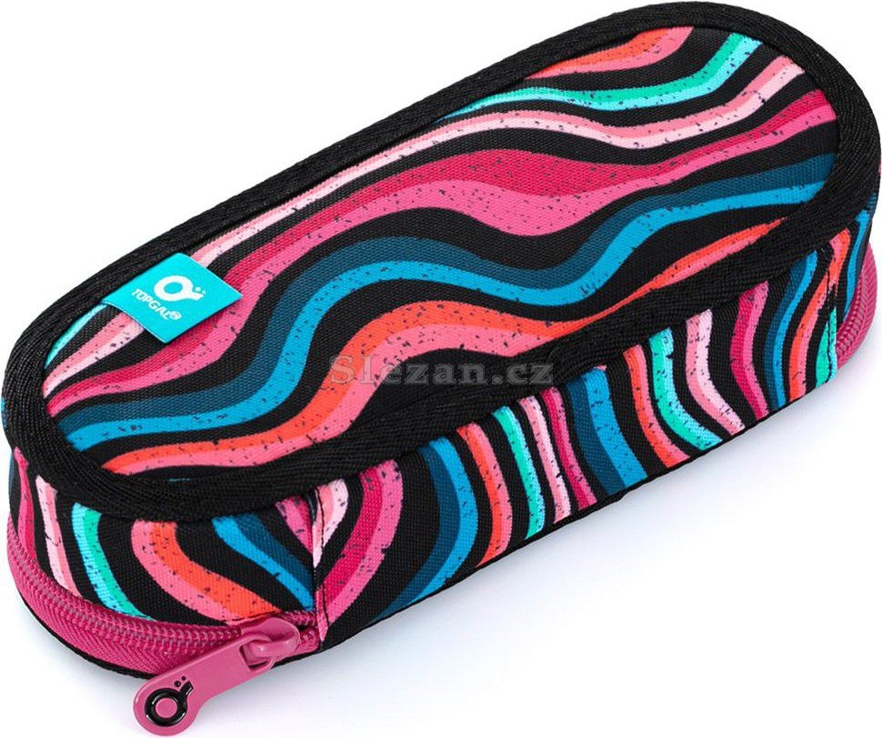 Oválný penál pro všechny potřebnosti. Uvnitř pouzdra je síťová kapsička na zip a klopa, na níž jsou umístěny gumičky pro uchycení celkem devíti tužek a propisek, které je potřeba mít přehledně uspořádané a po ruce. Volný prostor pod klopou pak umožňuje volně umístit další psací potřeby – pastelky, fixy, prostě cokoliv potřebujete. Pouzdro je polstrované, takže se tužky zaručeně nepolámou. Zipy s velkými taháčky navíc umožní bezproblémovou manipulaci s pouzdrem.