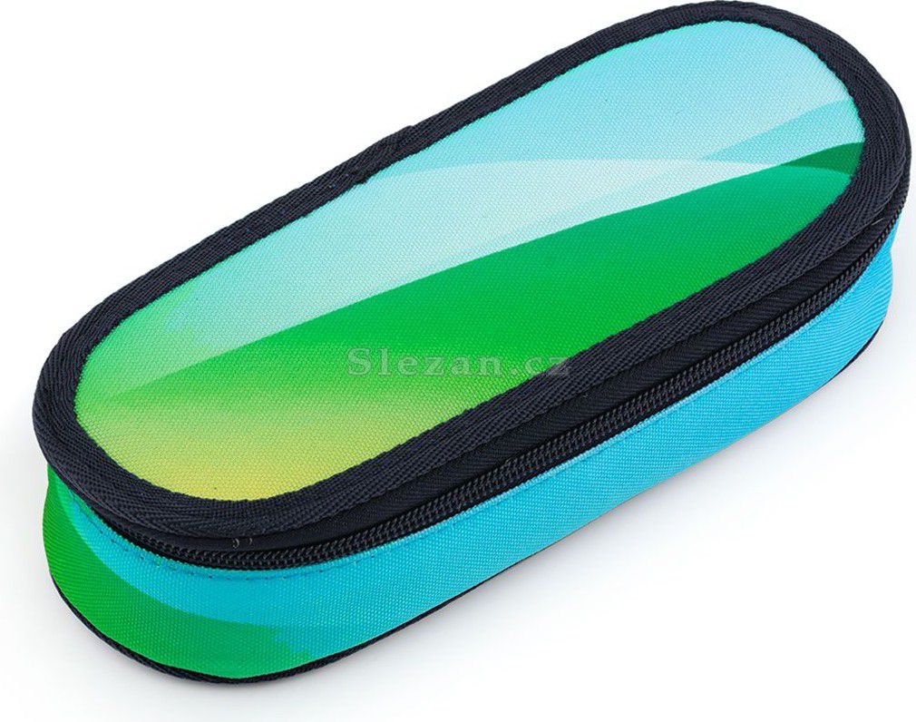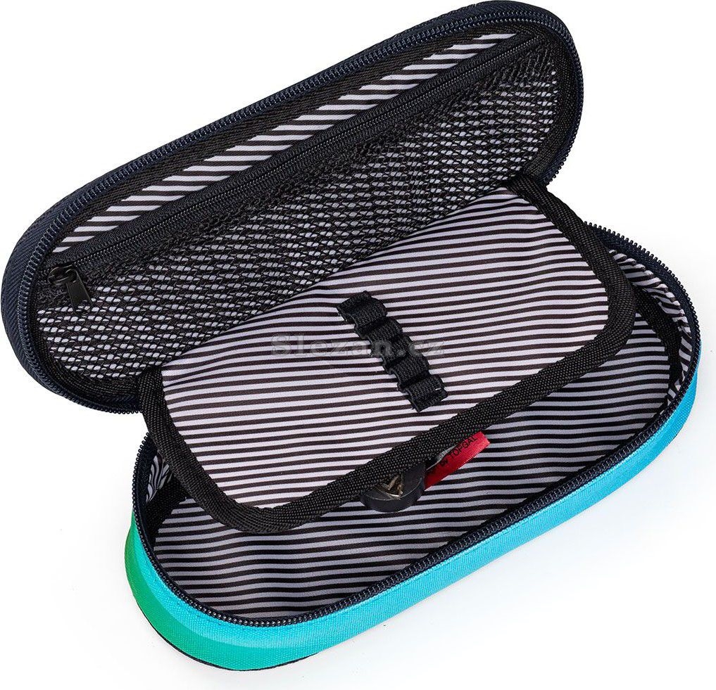Oválný penál pro všechny potřebnosti. Uvnitř pouzdra je síťová kapsička na zip a klopa, na níž jsou umístěny gumičky pro uchycení celkem devíti tužek a propisek, které je potřeba mít přehledně uspořádané a po ruce. Volný prostor pod klopou pak umožňuje volně umístit další psací potřeby – pastelky, fixy, prostě cokoliv potřebujete.