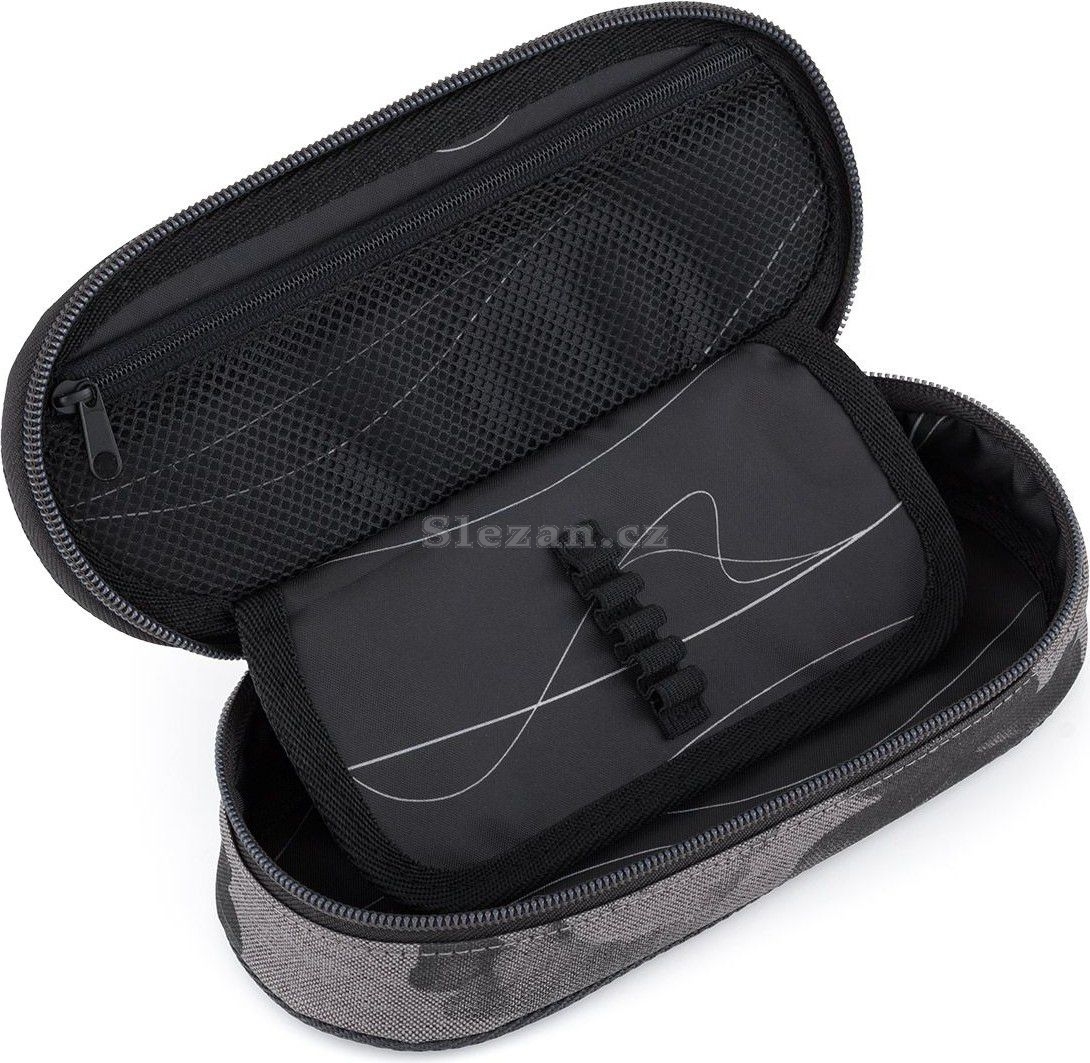 Oválný penál pro všechny starší školáky a studenty. Uvnitř pouzdra je síťová kapsička na zip a klopa s devíti gumičkami na propisky. Volný prostor pod klopou slouží pro další psací potřeby – pastelky, fixy, ale i pravítko nebo kružítko.