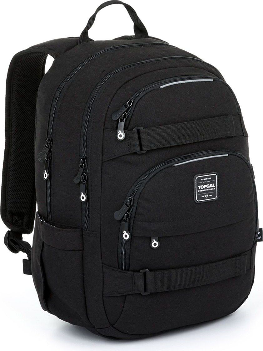 Objemný dvoukomorový batoh v oblíbené černé. Záda batohu jsou polstrovaná a anatomicky tvarovaná. Uvnitř zadní komory najdete polstrovanou kapsu na notebook i tablet, v druhé komoře kapsičku na zip a karabinu na klíče.