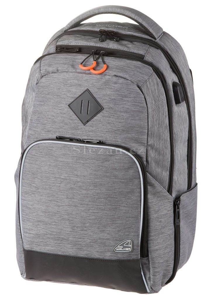 Na ní je našitý organizér, který tvoří dvě otevřené kapsičky mezi nimiž jsou poutka na psací potřeby. Velká zadní komora je členěna polstrovanou kapsou na notebook velikosti 15" na níž je našitá otevřená kapsa na tablet. Obě kapsy uzavírá široká pruženka ukončená suchým zipem. Na protější straně je v horní části malá kasička a USB kabel, který vyúsťuje v USB port na vnější straně středového věnce. V hodní části středového věnce je samostatná kapsička na zip přístupná z venku. V horní části zadního dílu je široké pevné madlo. Druhá komora je jednoduchá s otevřenou kapsou přese celou šířku batohu. Obě komory se uzavírají zipem. Obvod přední kapsy a část nosných řemenů jsou lemovány reflexní paspulí pro lepší viditelnost při špatných světelných podmínkách. Zádová část má tvarované polstrování pro pohodlné nošení. Dolní bederní operka je řešena jako skrytá kapsa na zip s RFID (radiofrekvenční) ochranou. Úplně dole se nachází nastavitelný bederní pásek pro lepší stabilitu batohu na zádech studenta. Nosné řemeny jsou polstrovány a na spojovacím pásku řemenů je umístěna píšťalka pro výstražný hvizd. V horní části zádového dílu je připevněno jednoduché poutka na zavěšení. Po obou stranách batohu jsou rozšiřitelné boční kapsy. Dno je vyztužené, textilní.