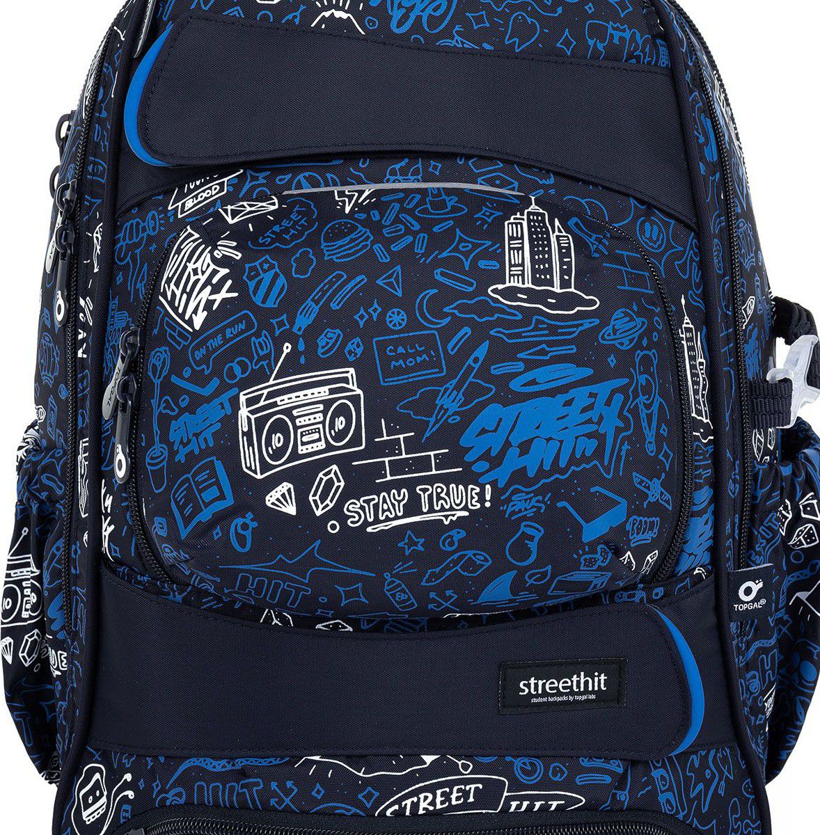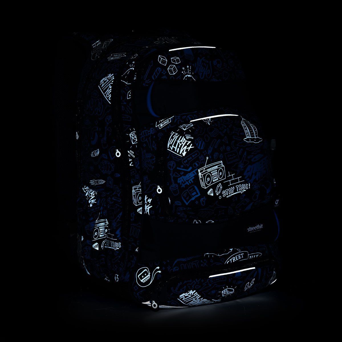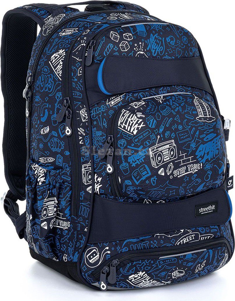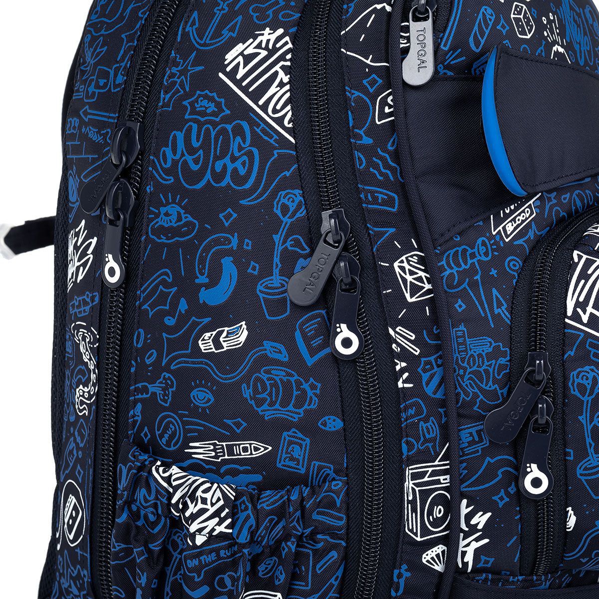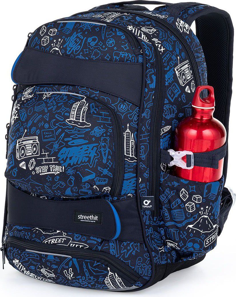 Objemný dvoukomorový batoh s módními doodle art obrázky. Záda batohu jsou polstrovaná, anatomicky tvarovaná a pevná díky lehké hliníkové výztuze. Uvnitř zadní komory je umístěna polstrovaná kapsa na notebook i tablet a druhá menší na mobil či powerbanku.