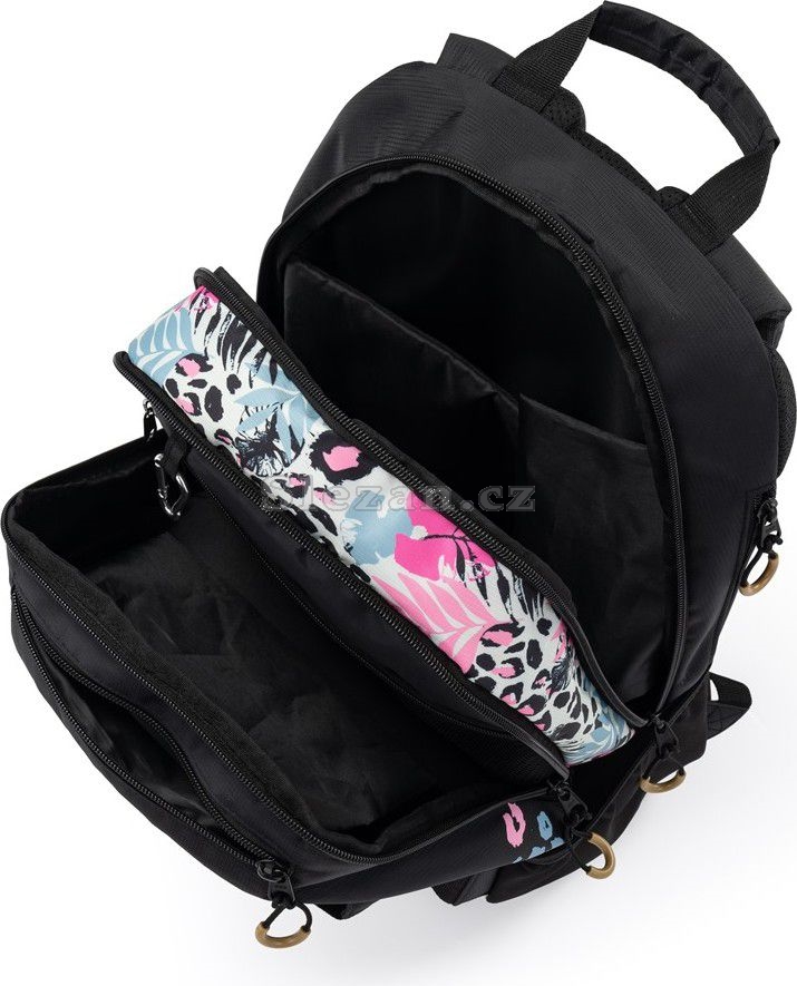 Batoh se skládá ze dvou hlavních komor a jedné menší přední kapsičky opatřenými pevnými zipy a praktickými poutky.