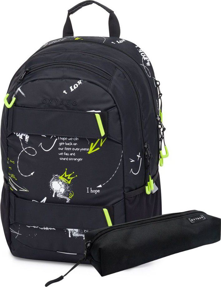 - Studentský i volnočasový školní batoh řady OXY SPORT vyniká ergonomicky tvarovanými zády, nastavitelnými polstrovanými ramenními popruhy a hrudním popruhem, díky kterým se pohodlně nosí.