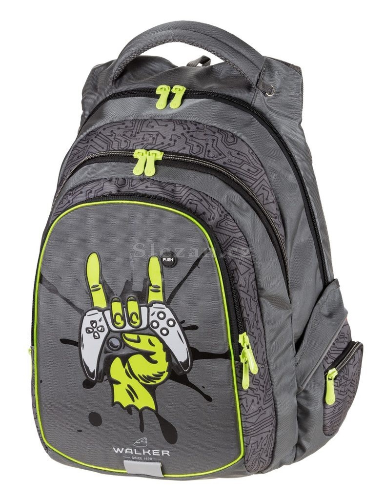 Studentský batoh WALKER FAME je dvoukomorový batoh s velkou přední kapsou uzavíranou na zip. Zadní komora má v horní části kapsičku na zip, na zadní části velkou otevřenou kapsu a vnitřní část je členěna zdvojenou přepážku, která tento prostor člení na tři samostatné části. Druhá komora je jednoduchá bez vnitřního členění. Přední velká kapsa má organizér navitý na kapse na zadní části. Organizér tvoří kapsička na mobil, síťovaná kapsička na zip a přihrádky na psací potřeby. V dolní části kapsy je reflexní paspule pro lepší viditelnost při špatných světelných podmínkách. Zádová část má ergonomické síťované polstrování. Široké nosné řemeny jsou opatřeny výškově nastavitelným spojovacím prsním páskem a reflexním páskem. V horní části je široké pevné madlo a vzadu pod ním poutko na pověšení. Po obou stranách jsou zdvojené kapsy s reflexní paspulí. Vnější menší kapsa je uzavíraná na zip, vnitřní větší je otevřená.