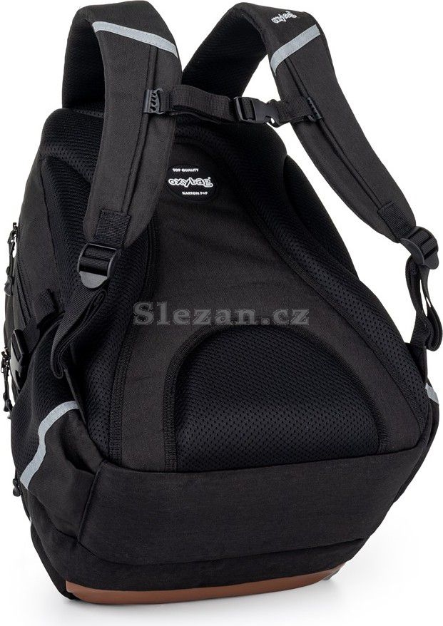 Oxy Scooler je tříkomorový batoh pro žáky i studenty s boční kapsou na láhev, organizérem, vnitřní malou kapsou a disponuje také kapsou na notebook do velikosti 15.