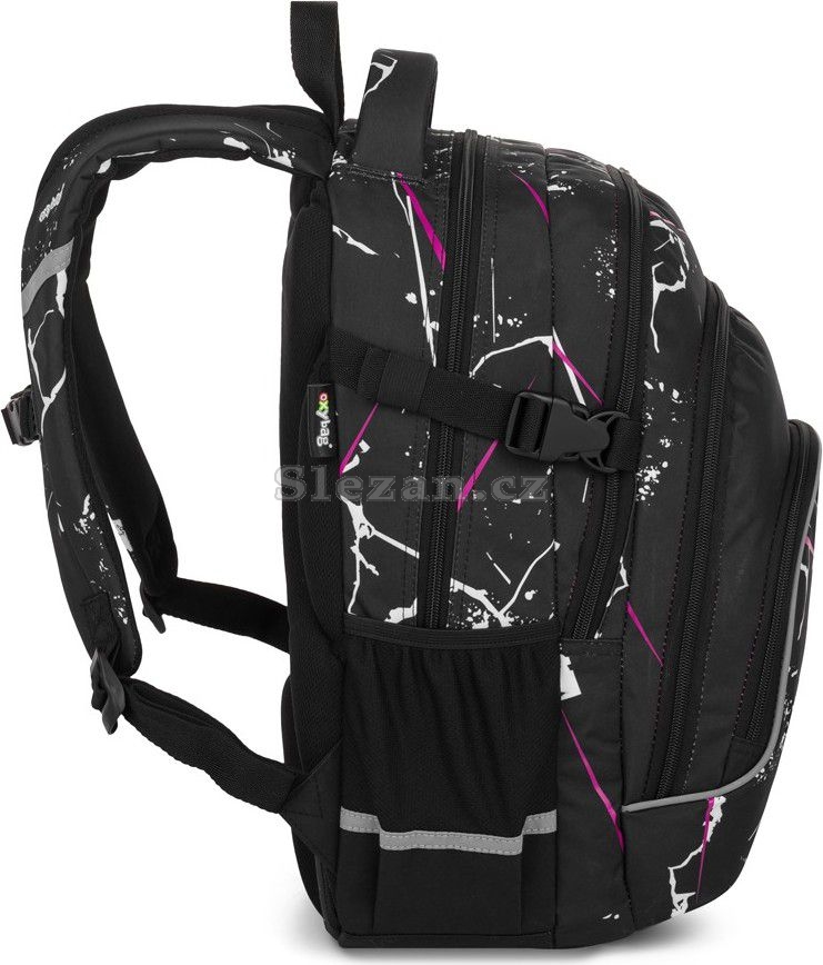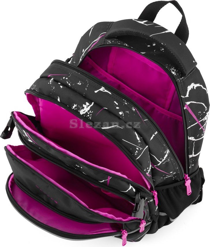 Tříkomorový batoh nabízí spoustu místa na učebnice, sešity i svačinu, nechybí organizér na drobnosti, vnitřní kapsa a přihrádka na notebook.